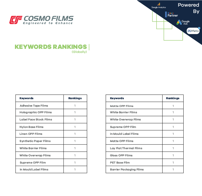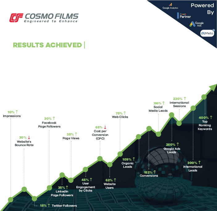 Cosmo Films is a leading manufacturer of speciality films across the globe. The company provides a range of packaging, lamination & labelling solutions. Apart from a dominant share in the Indian market, it exports to more than 80 countries worldwide.